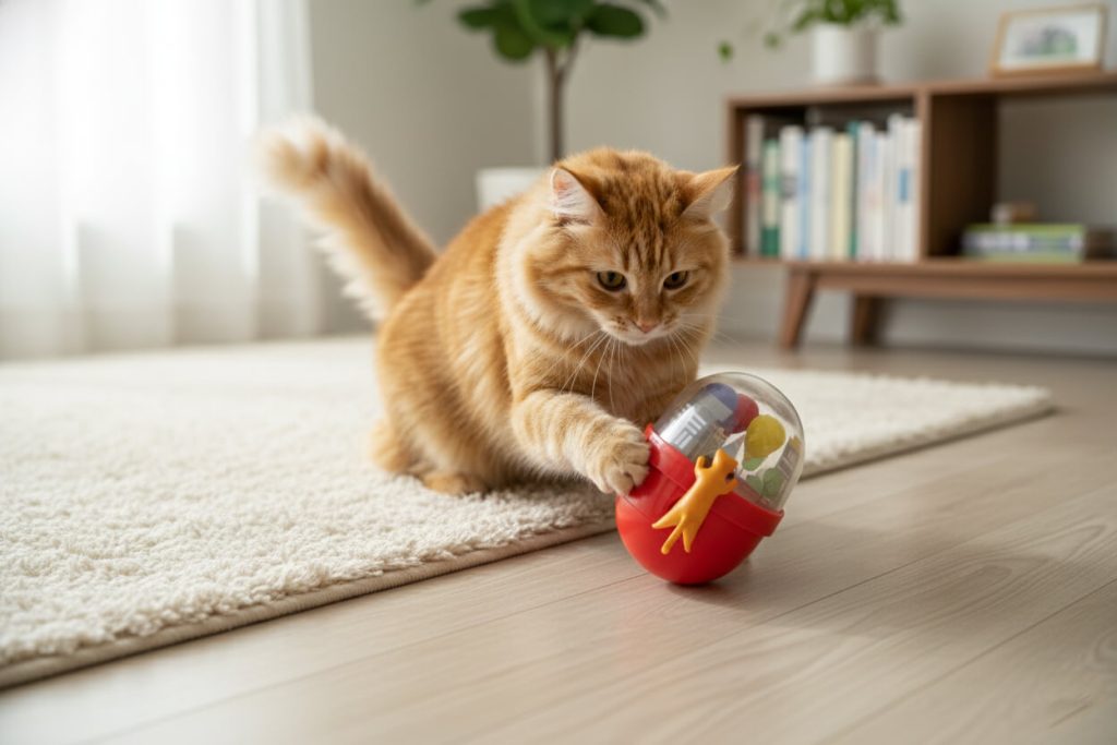 可嘗試不同材質或加入氣味誘因(如貓薄荷、零食藏球),也可透過互動遊戲重新喚起好奇心。